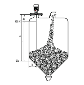 輸出 通過輸入空罐高度E(=零點),滿罐高度F(=滿量程)及一些應(yīng)用參數(shù)來設(shè)定,應(yīng)用參數(shù)將自動使儀表適應(yīng)測量環(huán)境。對應(yīng)于4-20mA輸出。