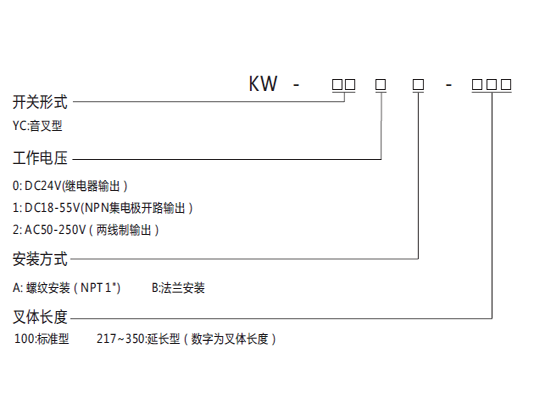 音叉式物位開關(guān)是一種通用型的物位限位開關(guān)。音叉由壓電晶 體激勵(lì)產(chǎn)生振動(dòng),當(dāng)音叉被液體或固體浸沒時(shí)振動(dòng)頻率發(fā)生變化, 這個(gè)頻率變化由電子線路檢測(cè)出來并輸出一個(gè)開關(guān)量。音叉式物位 限位開關(guān)不受介質(zhì)電參數(shù)以及湍流、攪動(dòng)、氣泡、 振動(dòng)等因素的影 響,無活動(dòng)部件,因此無需維護(hù)和調(diào)整,是復(fù)雜工況下物位開關(guān)的 理想選擇。