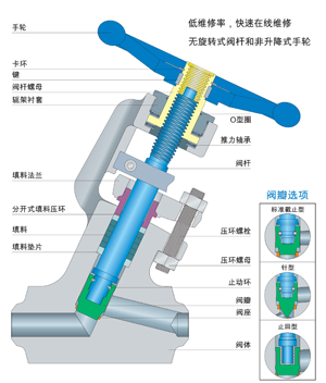 一體式鍛造,無閥帽結構設計的截止閥,減少了閥體與閥帽之間的泄漏點,在線維護時可以不用拆卸閥帽。 江蘇蘇北閥門有限公司生產(chǎn)的Y型工藝截止閥主要系列有