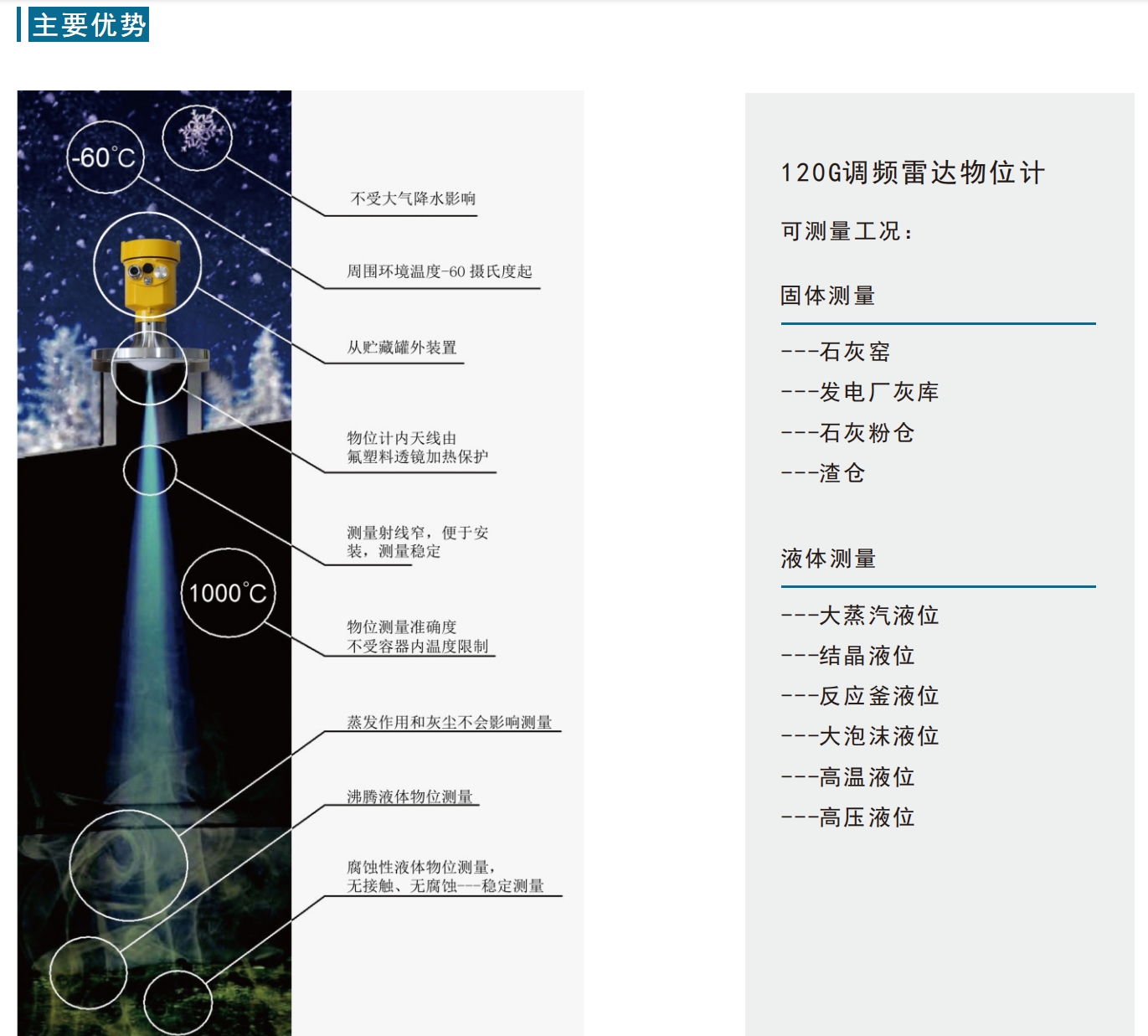 波管、旁通管中的液位;從被測介質(zhì)中,可以測量液體、顆粒、漿液等。