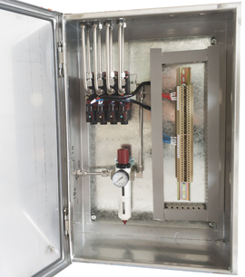 集控系統(tǒng)電氣控制回路接到電磁閥箱,電磁閥、氣源分配器等各類氣動(dòng)、電器元件集中安裝,操作、維護(hù)十分方便。 節(jié)省了操作空間,保障安全生產(chǎn),特別適用于在惡劣工況條件下的氣動(dòng)控制系統(tǒng)。電磁閥箱的集中控制系統(tǒng),在設(shè)備巡檢時(shí)節(jié)省了時(shí)間,方便了檢修,提高了工作效率。使用電磁閥箱,對于后續(xù)的維護(hù)工作、改造升級非常方便